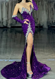 V-Neck Sleeveless Sequins Beaded Side Slit Sheath Prom Dress simple gentle atmospheric and unique desi Bring summer colors to enhance whiteness