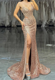 V-Neck Sleeveless Sequins Beaded Sparkly Fitted Sheath Sparkly Prom Dress simple gentle atmospheric and unique desi Bring summer colors to enhance whiteness