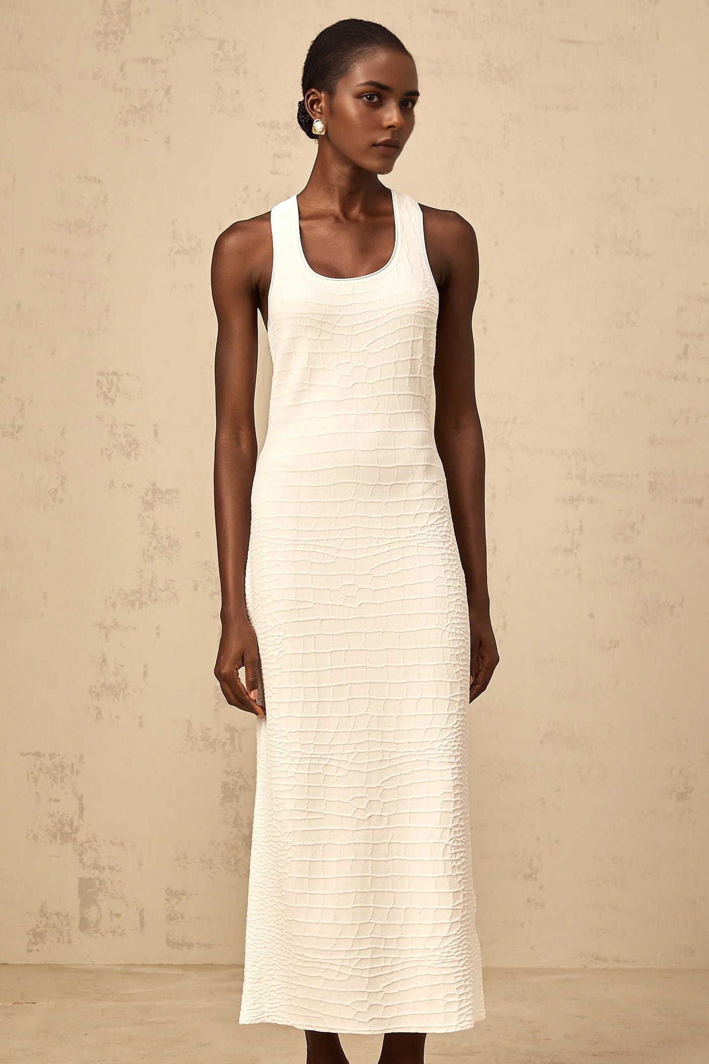 White Crocodile - Textured Racerback Midi Dress white textured jacquard tank midi dress Evening Dress