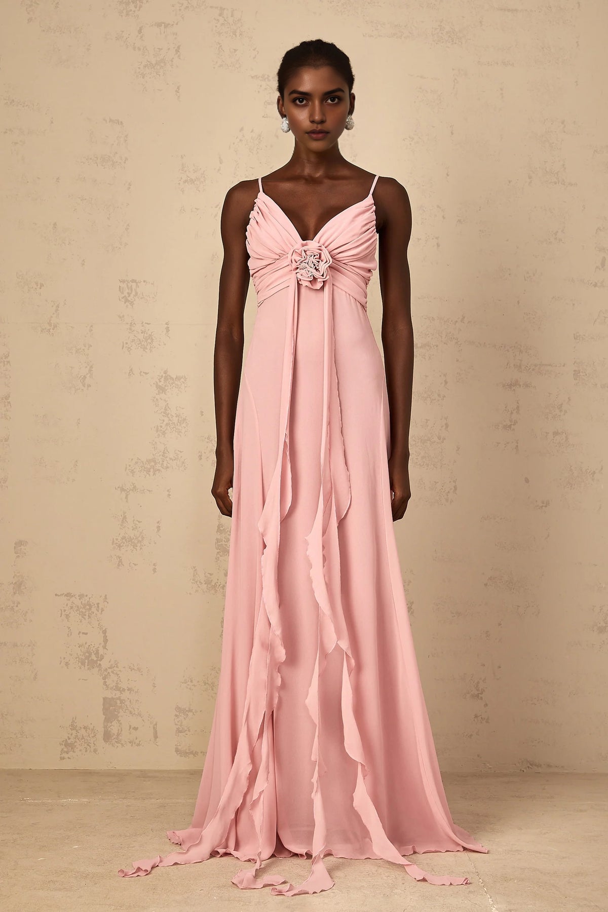 White Draped Long Sleeve Maxi Dress with Waist Detail Soft-Pink 3D Petal Tulle Maxi Dress Evening Dress