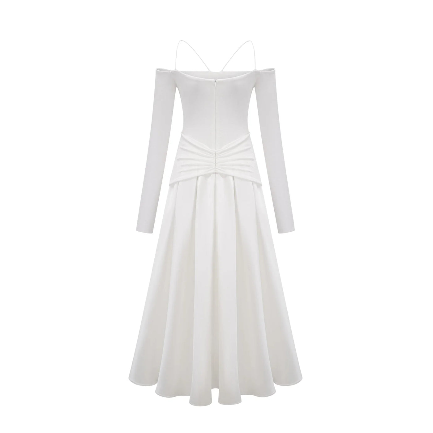 White Off - Shoulder Maxi Dress with Gold Accents Nadine off-shoulder panelled maxi dress in White - US 2 / UK 6 / EU 32