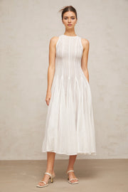 White Sleeveless Lace Midi Dress with Textured Detailing white pointelle puff midi dress Evening Dress Prom, black tie events, formal weddings, and upscale parties