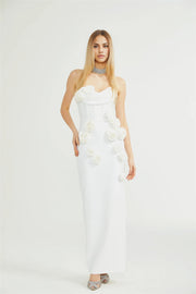 White Strapless 3D Floral Maxi Dress off-shoulder floral dress Evening Dress