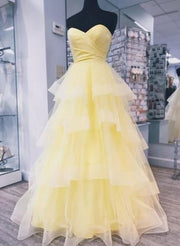 Yellow dress with strapless cross design and mesh skirt suitable for occasions such as dinners and dances Prom, black tie events, formal weddings, and upscale parties