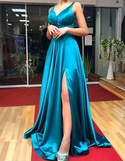 A-Line Spaghetti Straps Long Turquoise Prom Dress with Split simple gentle atmospheric and unique desi Bring summer colors to enhance whiteness