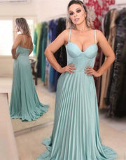 A-Line Spaghetti Straps Pleated Elastic Satin Prom Dress simple gentle atmospheric and unique desi Bring summer colors to enhance whiteness