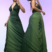 beautiful flowing retro gradient shiny V-neck long chiffon ball gown evening dress simple gentle atmospheric and unique desi Bring summer colors to enhance whiteness