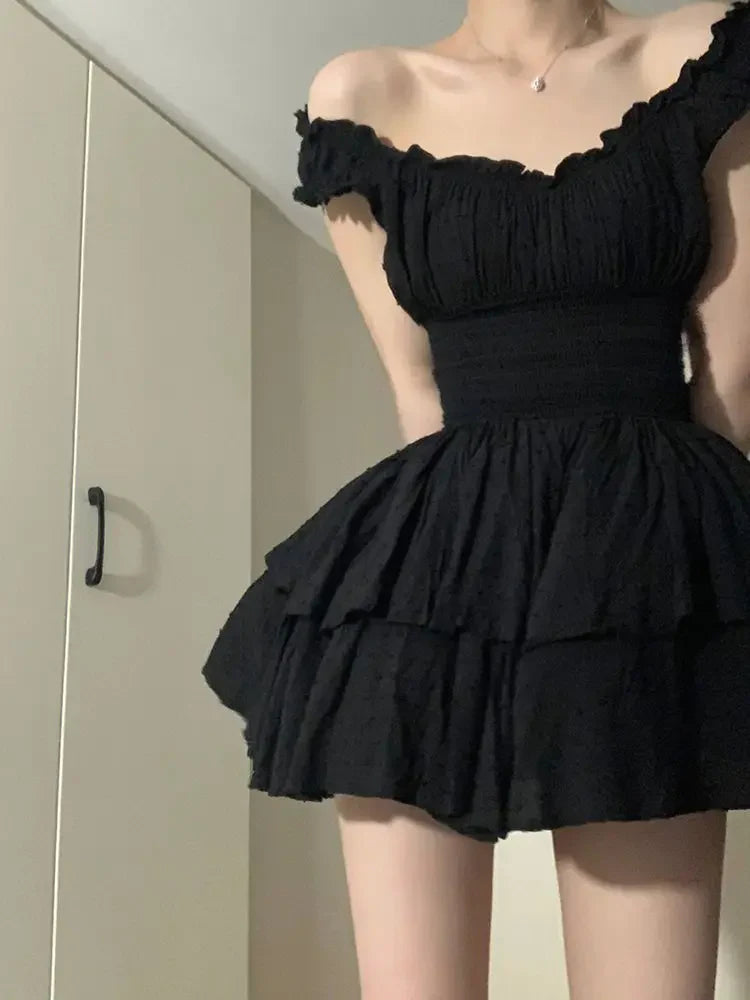 Black Mini Dress Women Vintage A-line Summer Sweet Homecoming Dress
