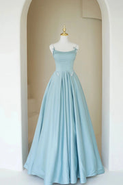 Blue Satin Long A-Line Prom Dress Beautiful Spaghetti Straps Evening Dress simple gentle atmospheric and unique desi Bring summer colors to enhance white