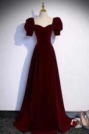 Burgundy Velvet Long A-Line Prom Dress Simple Short Sleeve Party Dress simple gentle atmospheric and unique desi Bring summer colors to enhance white