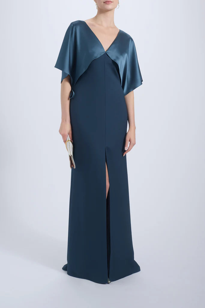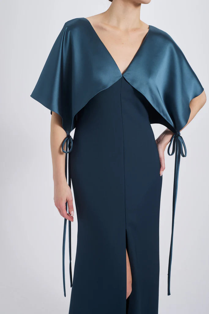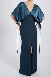 Cape Fluid Satin Gown Hammered Satin Gathered Dress Simple atmospheric beautiful and unique desig - US 2 / UK 6 / EU 32