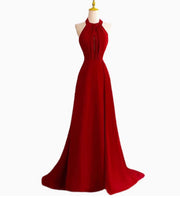 Classy A line Halter Sleeveless Satin Prom Dresses Red Summer Wedding Guest Dresses Wedding Guest Outfits simple gentle atmospheric and unique desi Bring summer colors to enhance whiteness