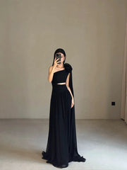 Classy A line One Shoulder Black Chiffon Long Prom Gown Summer Wedding Guest Dress Bridal Guest Dresses Wedding Outfits For Guest simple gentle atmospheric and unique desi Bring summer colors to enhance whiteness