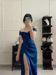 Classy Mermaid Off The Shoulder Royal Blue Slit Long Prom Gown Summer Wedding Guest Dress Bridal Guest Dresses Wedding Outfits For Guest simple gentle atmospheric and unique desi Bring summer colors to enhance whiteness