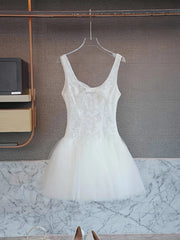 Cute A line Square Neck White Tulle Lace Party Dresses Short Formal Homecoming Dresses Night Chic Elegant Cocktail Dresses 16th Birthday Outfits Hoco Dress