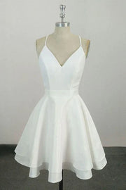 Cute Spaghetti Straps V Neck Knee Length Short Cocktail Dress Homecoming Dresses simple gentle atmospheric and unique desi Bring summer colors to enhance whitenes