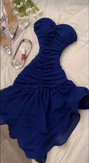 Dark Blue Mermaid Sweetheart Neck Pleated Chiffon Homecoming Dress Cocktail Dress Outfits simple gentle atmospheric and unique desi Bring summer colors to enhance whiteness