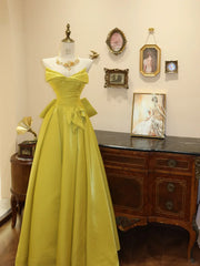 Elegant A Line Strapless Yellow Satin Long Prom Dress Evening Dress with Bow simple gentle atmospheric and unique desi Bring summer colors to enhance whiteness