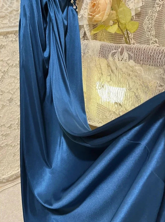 Elegant Long Satin Ball Gown Evening Gown Party Dress simple gentle atmospheric and unique desi Bring summer colors to enhance whiteness