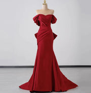Elegant Mermaid Off The Shoulder Red Satin Prom Dresses Formal Summer Wedding Guest Dresses Wedding Guest Outfits simple gentle atmospheric and unique desi Bring summer colors to enhance whiteness