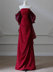 Elegant Mermaid Strapless Burgundy Satin Prom Dresses Formal Summer Wedding Guest Dresses Wedding Guest Outfits simple gentle atmospheric and unique desi Bring summer colors to enhance whiteness