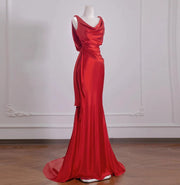 Elegant Mermaid V Neck Red Satin Prom Dresses Formal Summer Wedding Guest Dresses Wedding Guest Outfits simple gentle atmospheric and unique desi Bring summer colors to enhance whiteness