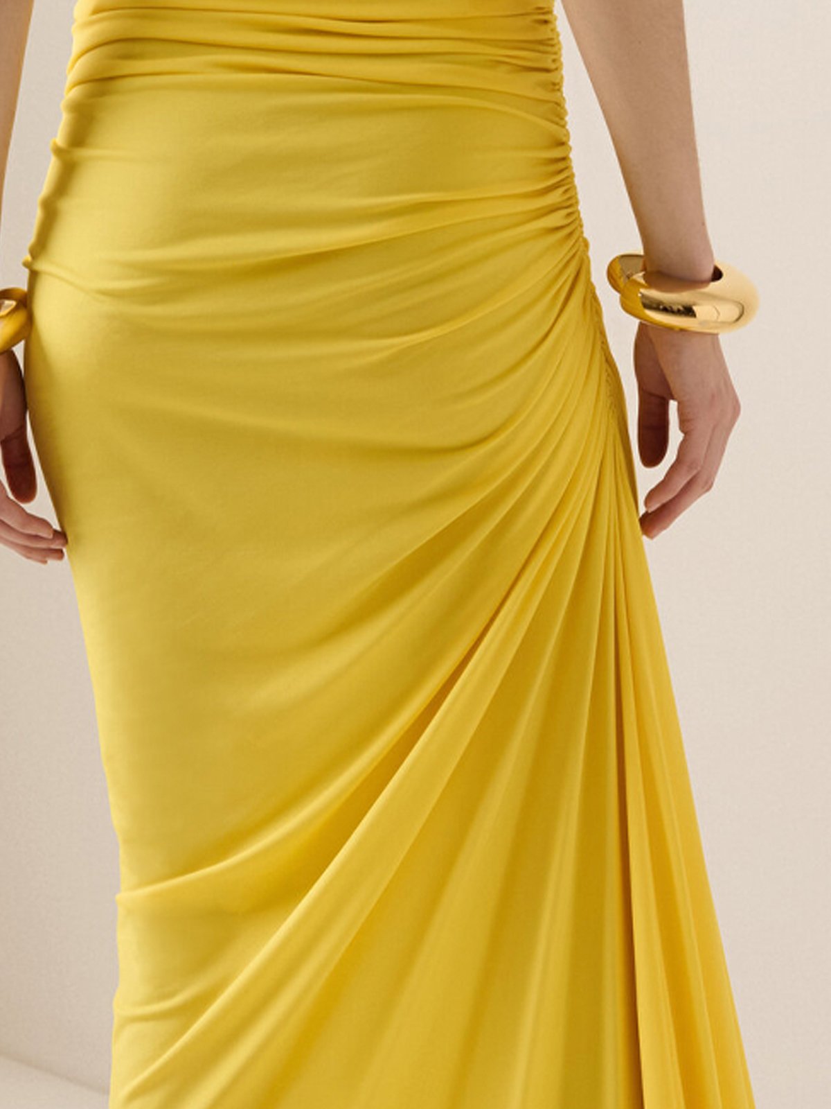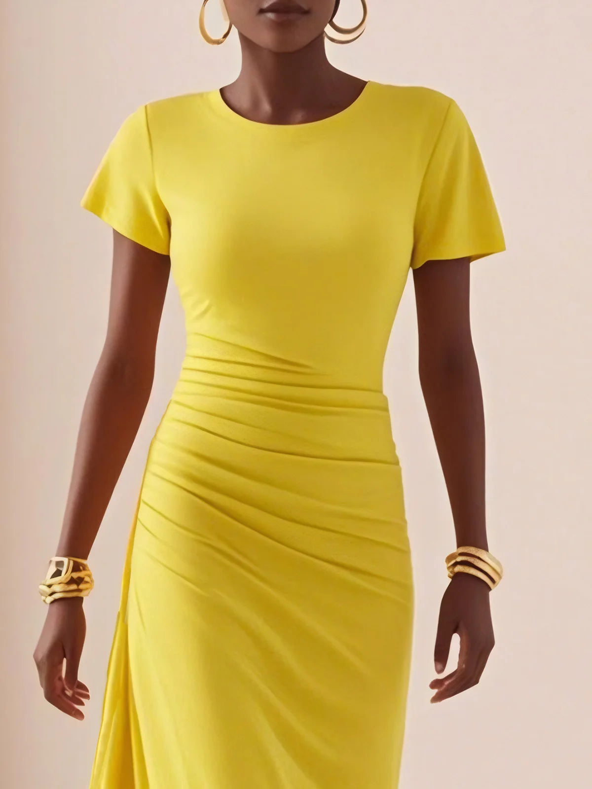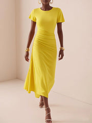 Elegant Plain Asymmetric Crew Neck Midi Dress Simple atmospheric beautiful and unique desi