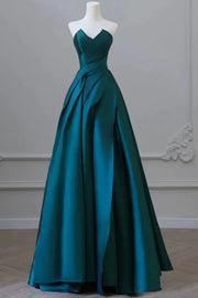 Elegant Strapless Empire-Waist Satin Pleated Long Formal Prom Dress Simple atmospheric beautiful and unique desi
