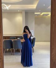 Fancy A Line Strapless Royal Blue Chiffon Sleeveless Long Evening Dress Party Gowns Evening Special Formal Dresses Prom Dress