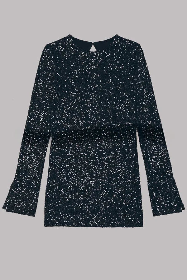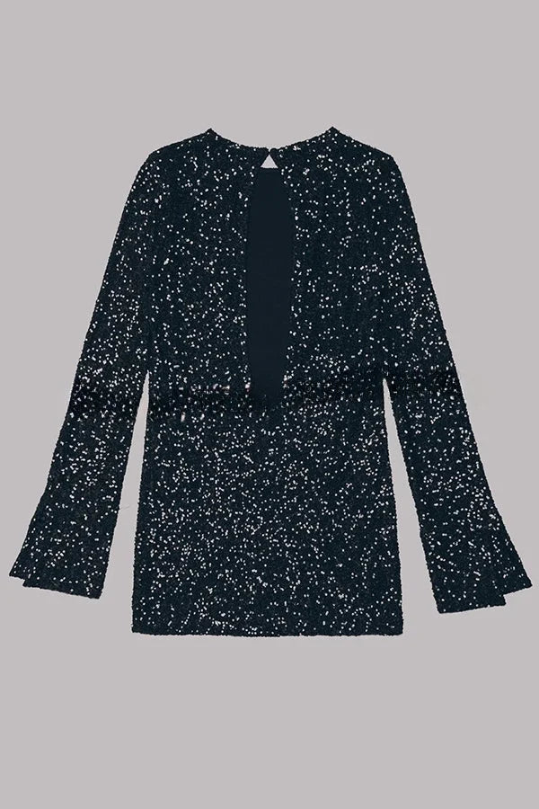 Flash Focus Sequin Extra Long Slit Sleeves Open Back Mini Dress Simple atmospheric beautiful and unique desi