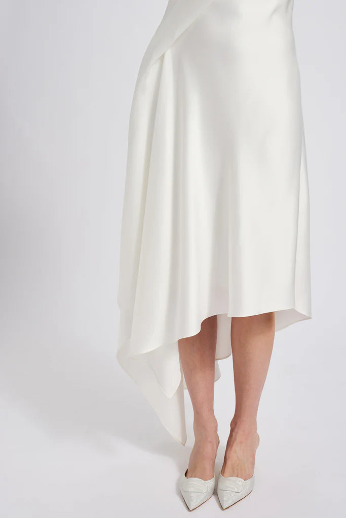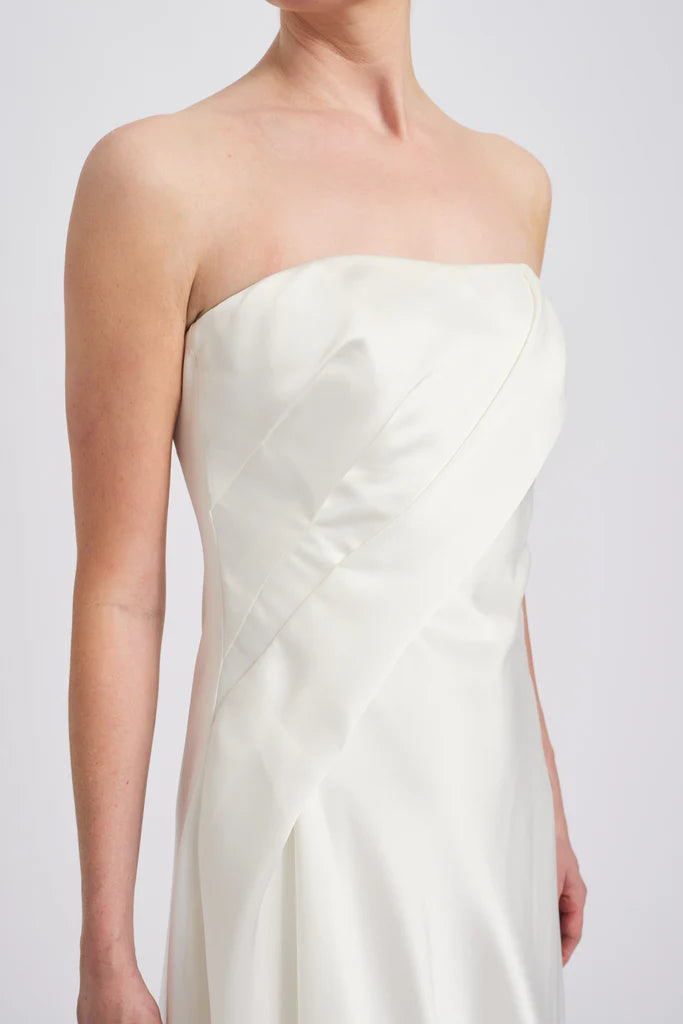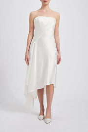 Fluid satin asymmetric handkerchief strapless dressShown in Ivory Simple atmo spheric beautiful and unique desig