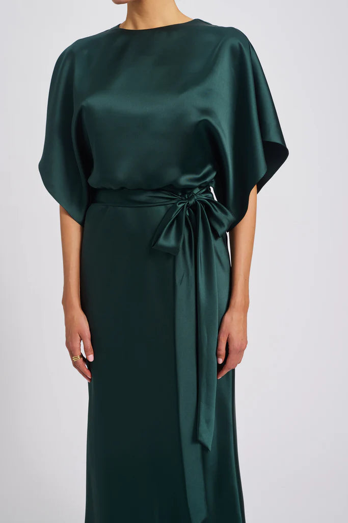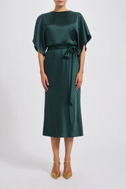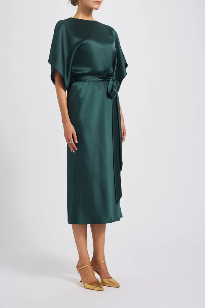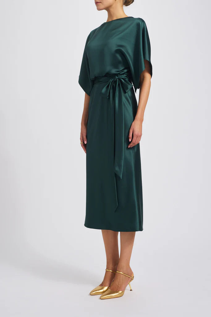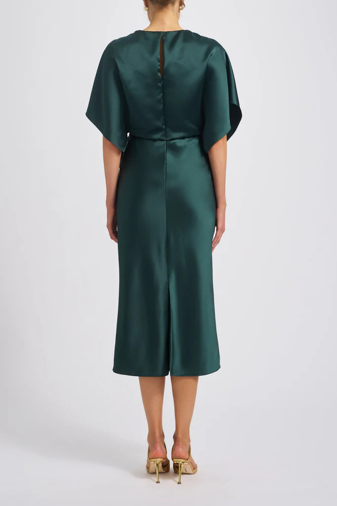 Fluid satin dolman sleeve bias midi dress Simple atmo spheric beautiful and unique design