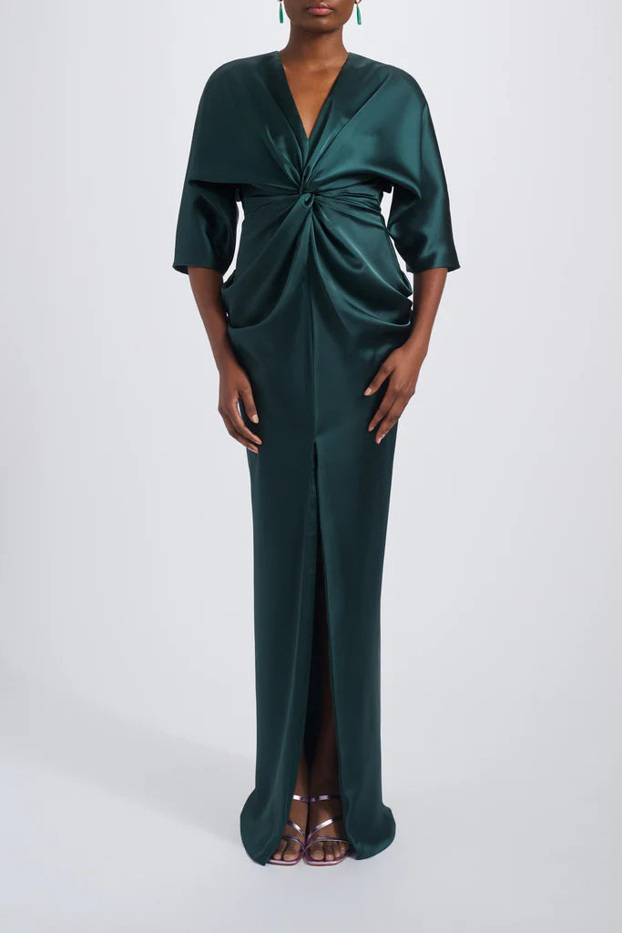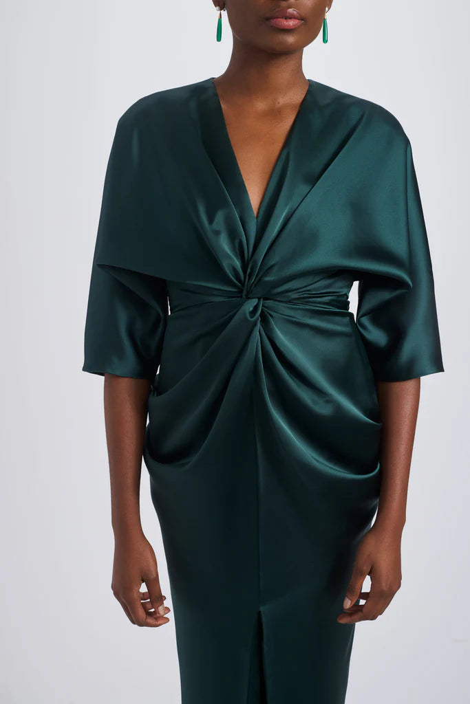 Fluid satin dolman sleeve draped column gown Simple atmo spheric beautiful and unique design