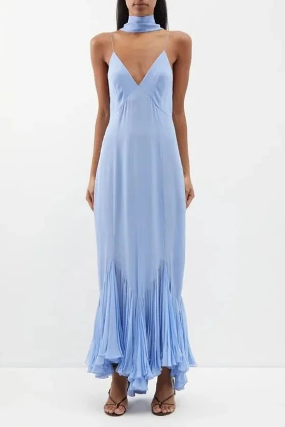 Frill Backless Slip Midi Dress Simple atmospheric beautiful and unique design