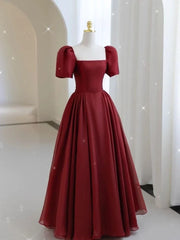 Glamorous A line Square Neck Short Sleeves Wine Red Chiffon Long Evening Party Gowns Evening Special Formal Dresses Prom Dress - US 2 / UK 6 / EU 32