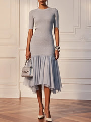 Gray Asymmetric Knit Crew Neck Half Sleeve Mermaid Midi Jersey Dress simple gentle atmospheric and unique desi Bring summer colors to enhance whiteness - US 2 / UK 6 / EU 32