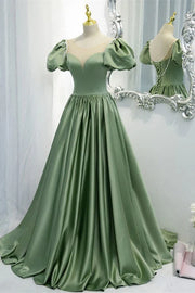 Green A-line Long Formal Gown Satin Prom Dresses simple gentle atmospheric and unique desi Bring summer colors to enhance whiteness