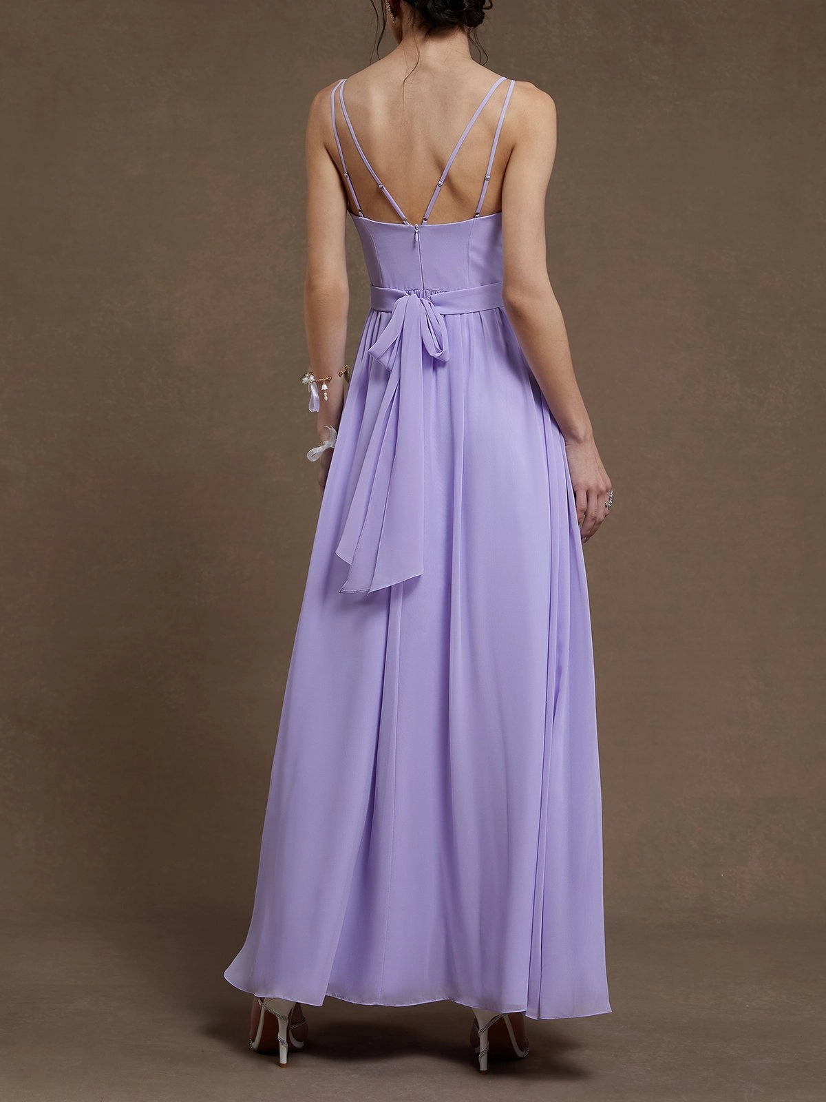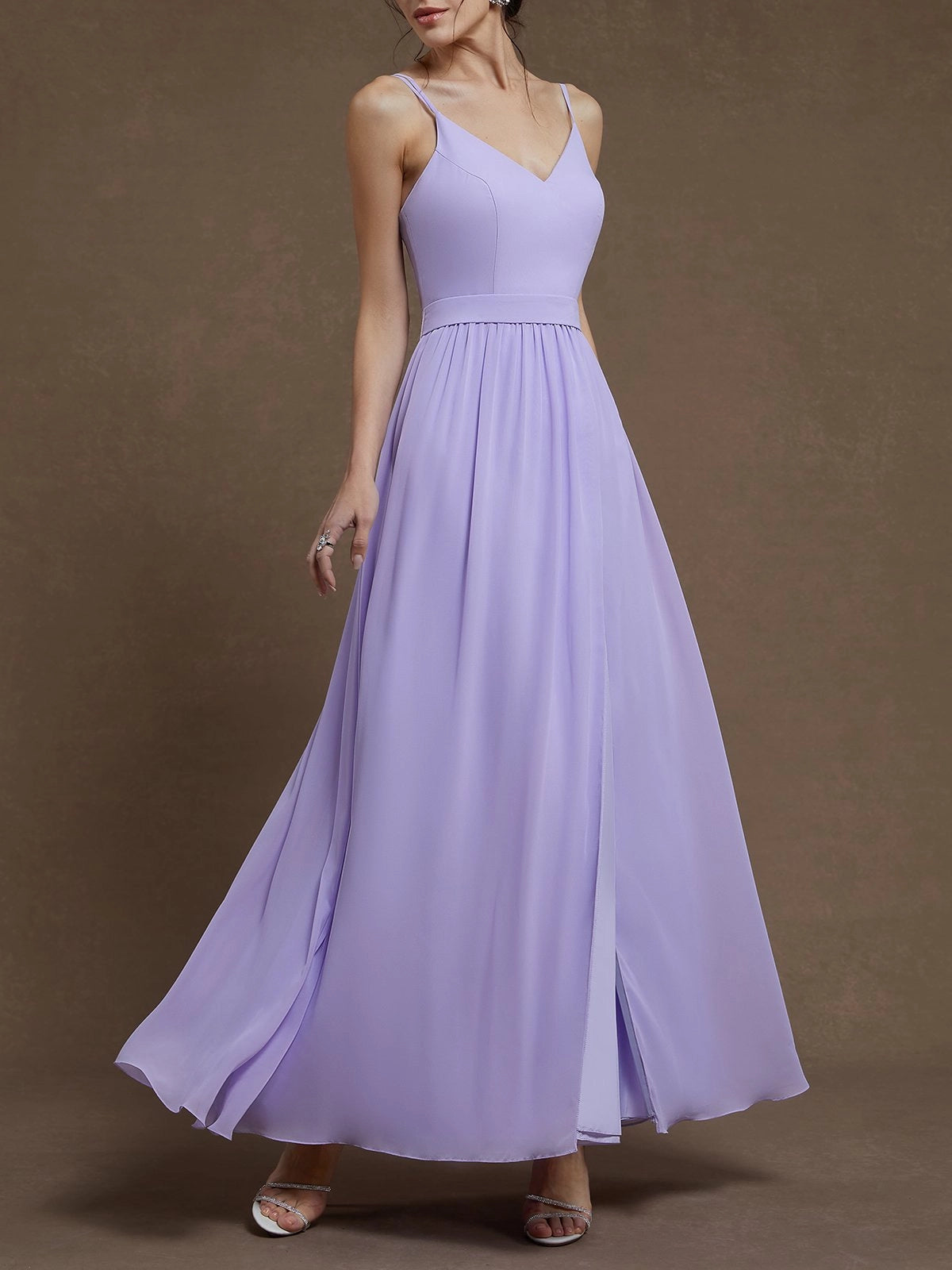 Lavender Purple Chiffon Spaghetti Gallus A-Line Gown Bridesmaid Dress simple gentle atmospheric and unique desi Bring summer colors to enhance whiteness