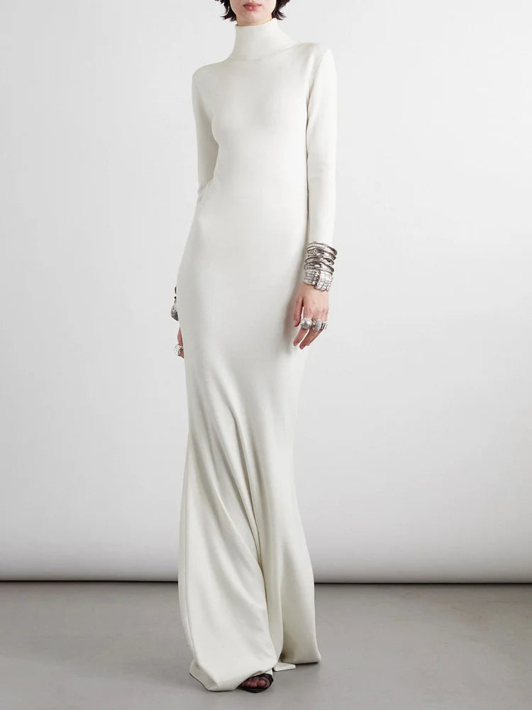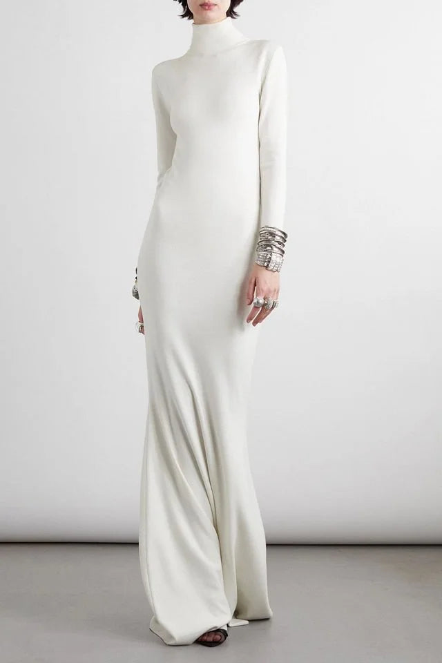 Long Sleeves Skinny Solid Color High Neck Maxi Dresses Simple atmospheric beautiful and unique desi - US 2 / UK 6 / EU 32