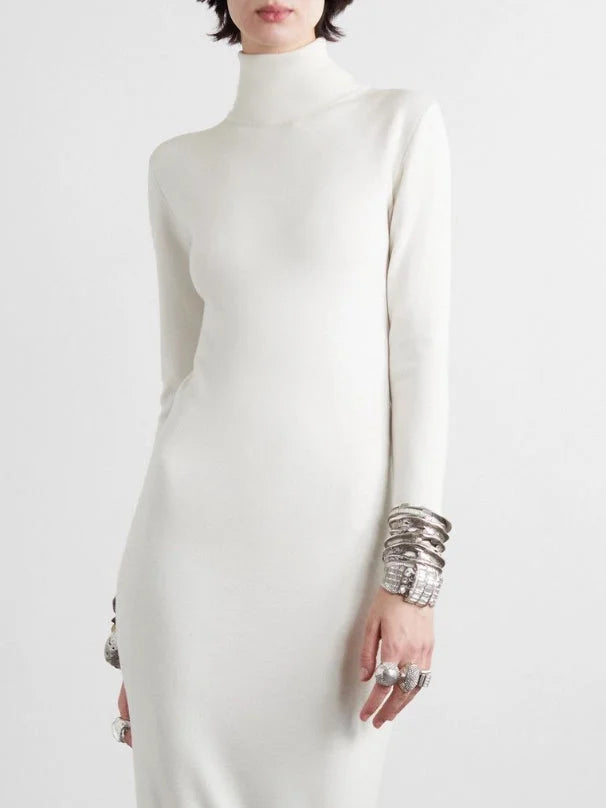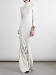 Long Sleeves Skinny Solid Color High Neck Maxi Dresses Simple atmospheric beautiful and unique desi