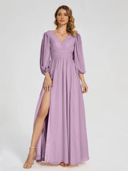 Long Sleeves V-neck Bridesmaid Dress with Side Slit simple gentle atmospheric and unique desi Bring summer colors to enhance whiteness - US 2 / UK 6 / EU 32