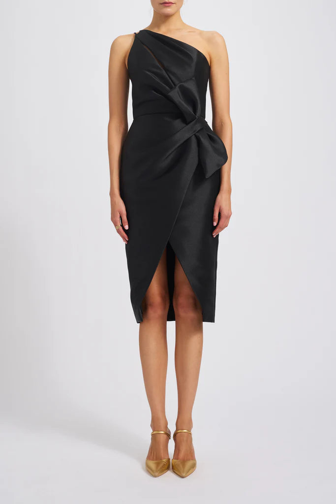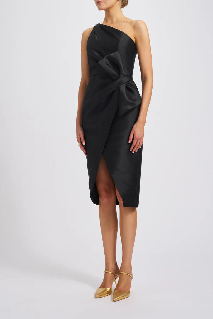 Mikado draped one shoulder wrap dress with looped bow detail Simple atmospheric beautiful and unique desig