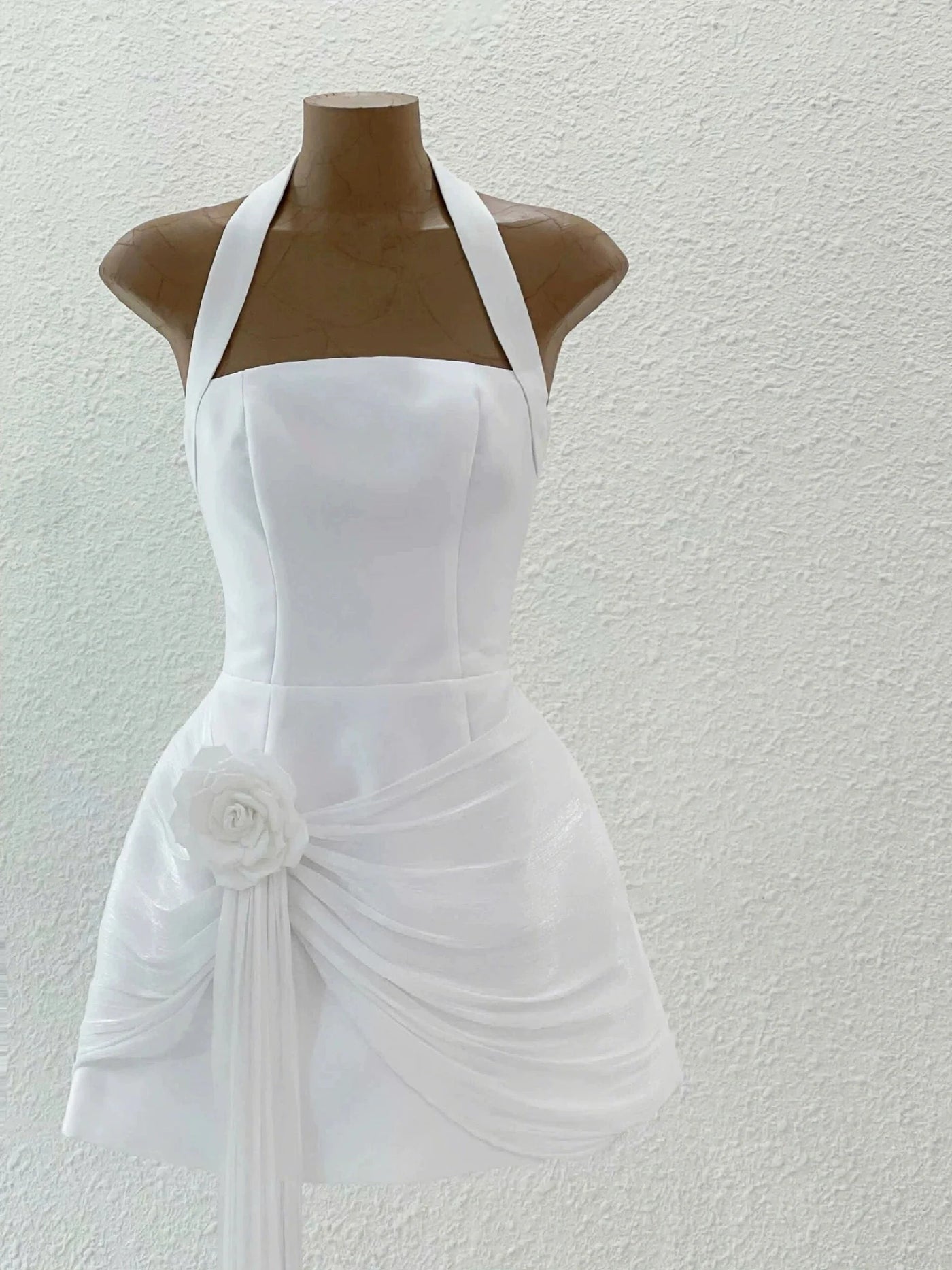 Modest A line Halter Little Black Dress Party Dresses Short Formal Homecoming Dresses Night Chic Elegant Cocktail Dresses 16th Birthday Outfits Hoco Dress