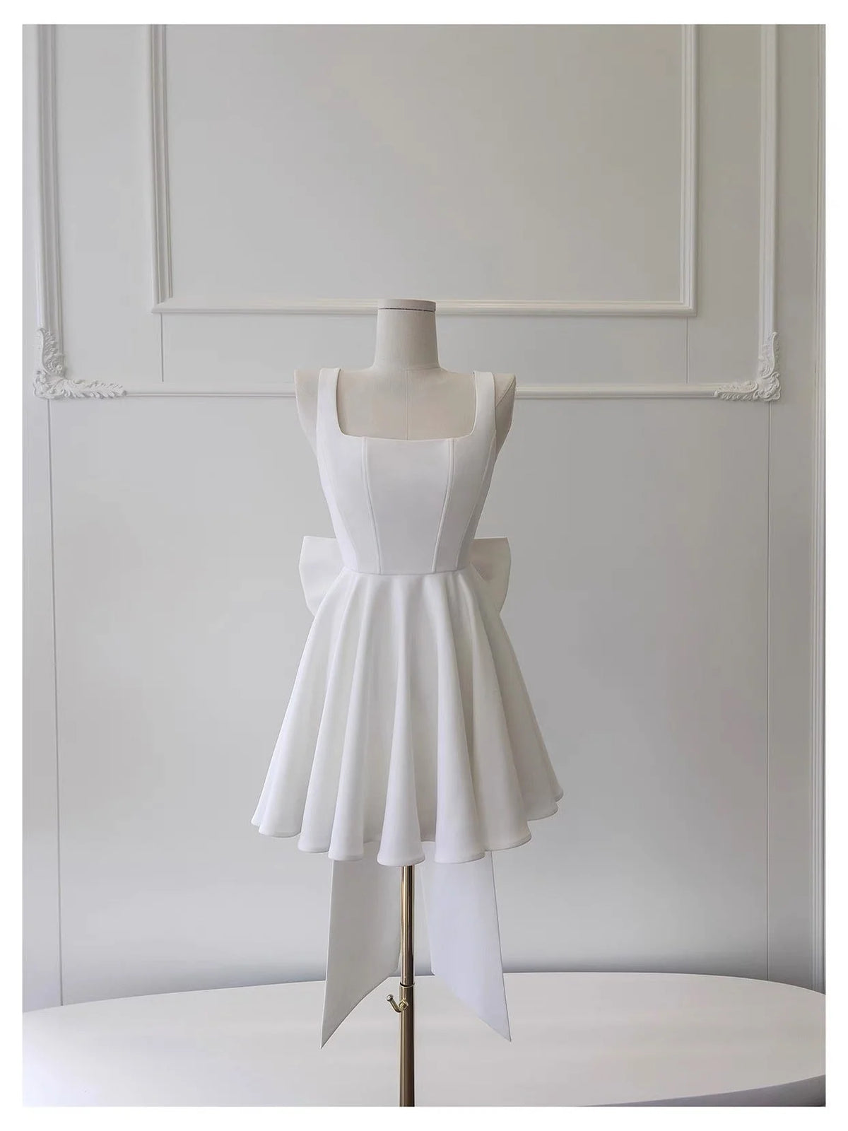 Modest A Line Square Neck White Formal 8th Grade Homecoming Dresses Middle School Short Birthday Gowns Graduation Dress Hoco Outfits - US 2 / UK 6 / EU 32