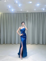 Modest Sheath One Shoulder Satin Long Prom Gown Summer Wedding Guest Dress Bridal Guest Dresses Wedding Outfits For Guest simple gentle atmospheric and unique desi Bring summer colors to enhance whiteness