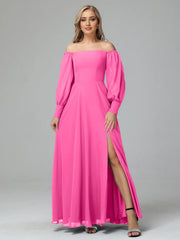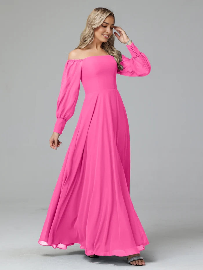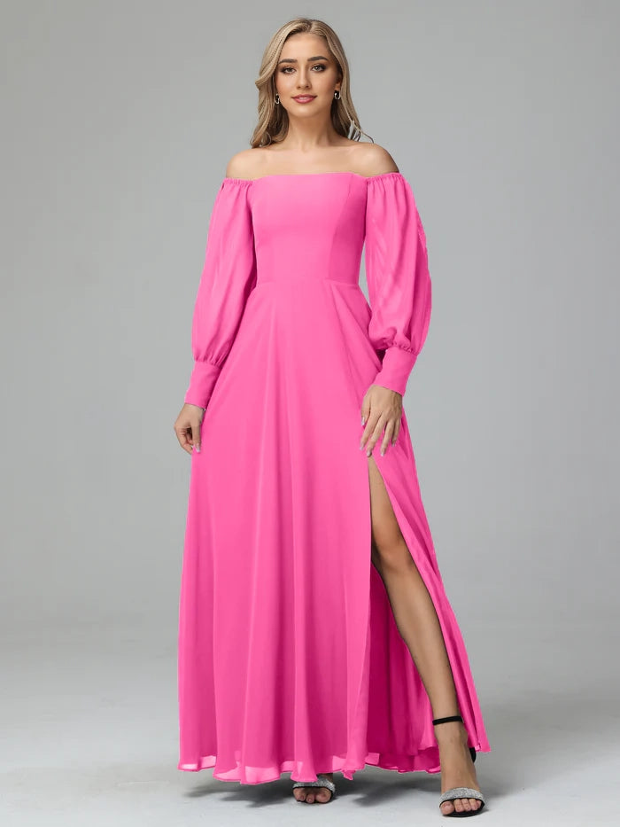 Off Shoulder Long Sleeves Chiffon Bridesmaid Dresses simple gentle atmospheric and unique desi Bring summer colors to enhance whiteness - US 2 / UK 6 / EU 32