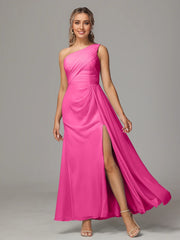 One Shoulder Floor Length Chiffon Bridesmaid Dress simple gentle atmospheric and unique desi Bring summer colors to enhance whiteness - US 2 / UK 6 / EU 32