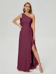 Side Slit One Shoulder Chiffon Bridesmaid Dress simple gentle atmospheric and unique desi Bring summer colors to enhance whiteness - US 2 / UK 6 / EU 32