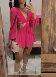 Plunge Neck Cut Out Waist A-Line Dress Sexy Homecoming Dress