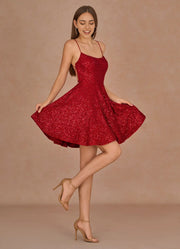 Red Sequin Mini Dress with Criss - Cross Back Sequorae Red Mini Dress Homecoming Dresses